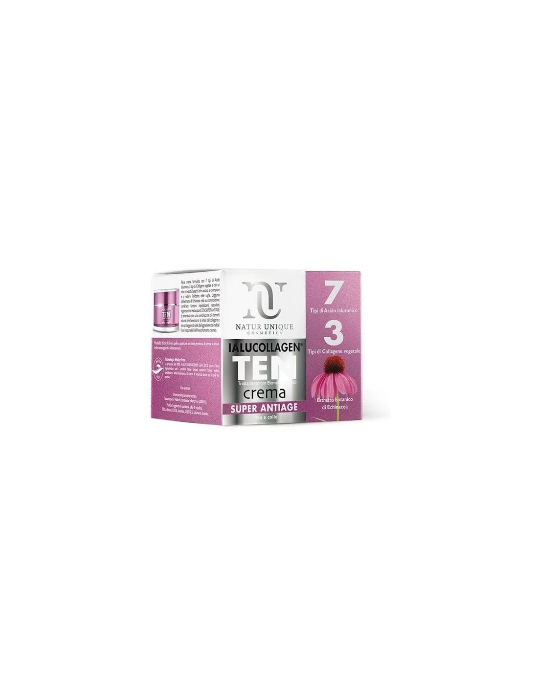 CREMA VISO, COLLO E DECOLLETE' CON 7 TIPI DI ACIDO IALURONICO E 3 DI COLLAGENE VEGETALE. COMPLETA LA FORMULA L'ESTRATTO BOTANICO DI ECHINACEA